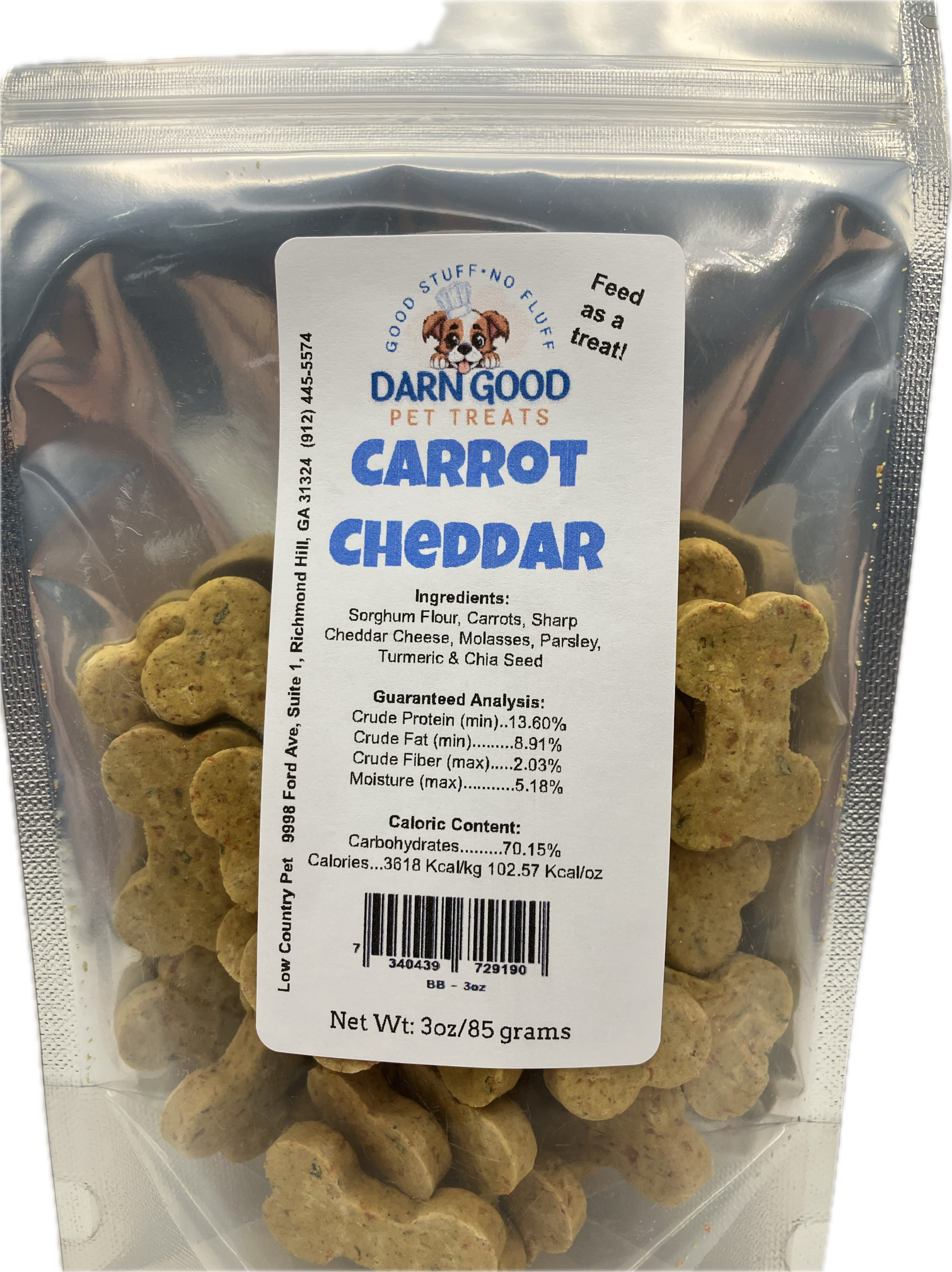 Choose Darn Good Pet Treats Carrot & Cheddar Cheese Dog Cookies for a snack that combines taste and health. Whether for training purposes or as a special indulgence, these cookies are sure to become a favorite for your furry family member.
